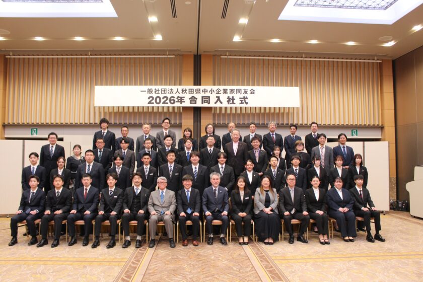 4月1日、秋田県中小企業家同友会が主催する「合同入社式」が秋田キャッスルホテルにて開催され、当社からも3名の新入社員が参加いたしました。